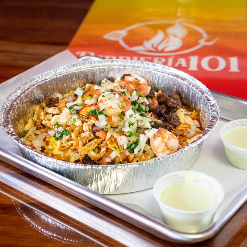 3 Meat and Cheese Protein: Steak/asada, Chicken/pollo, Pork/alpastor, Birria, Chorizo | Comes with Consome